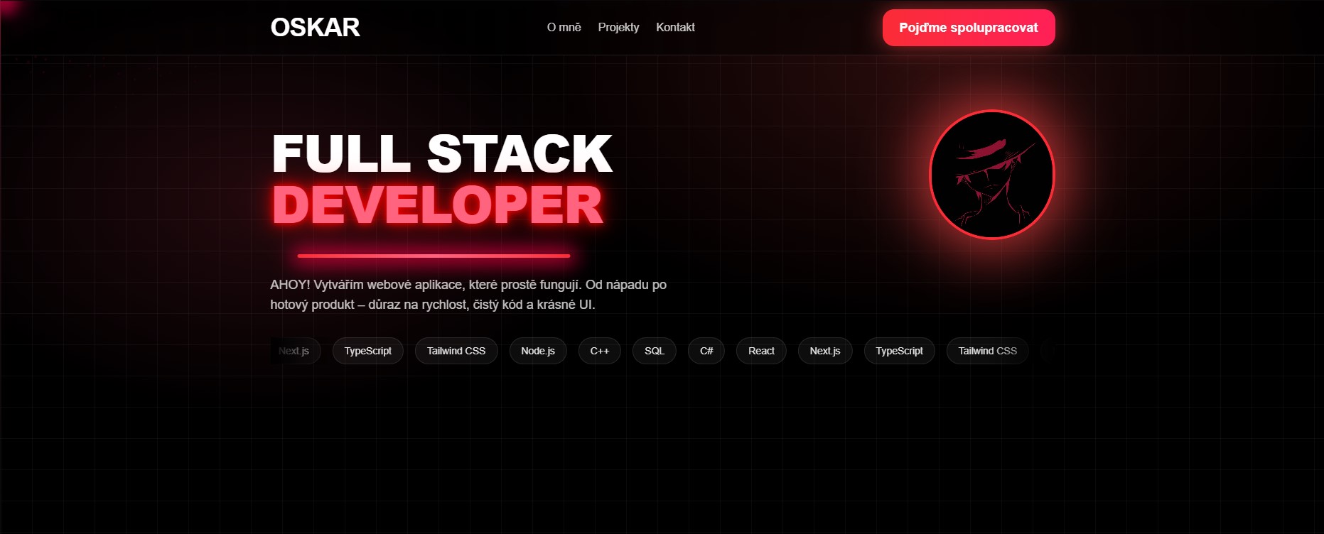 Můj starý web, neonový design s (teď už nefunkční) GitHub API